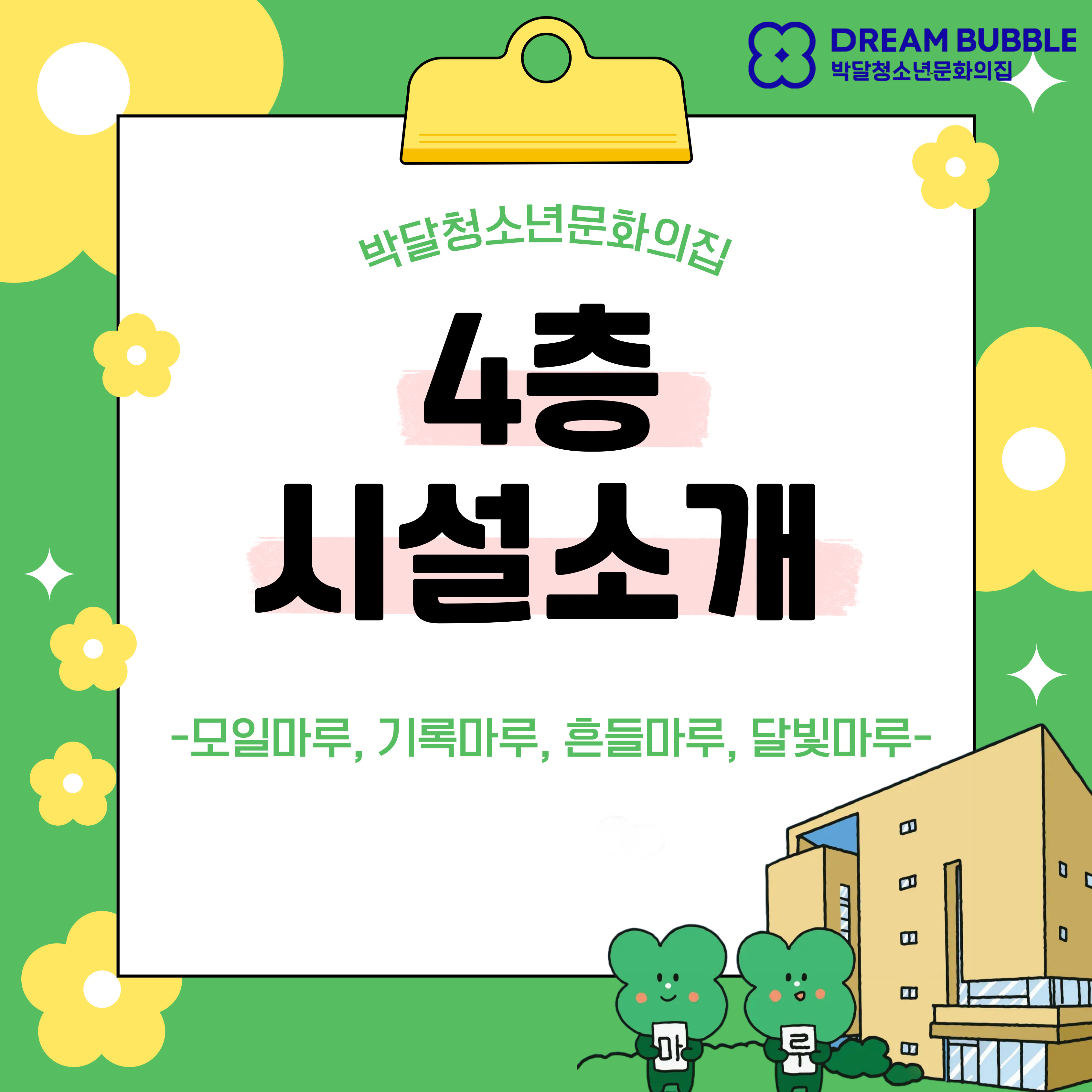 시설 박달청소년문화의집 | 작성자 박******** | [대학생 현장실습]박달청소년문화의집 대학생 현장실습 실습생과 함께 둘러보는 박달청소년문화의집 3탄 | 작성일 2026-02-22 |