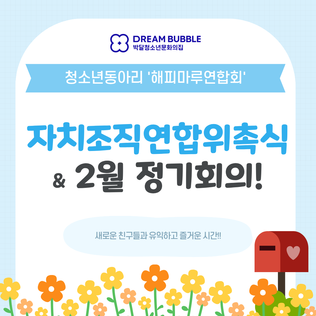 시설 박달청소년문화의집 | 작성자 김** | 2026 청소년동아리 '해피마루연합회' 2월 정기회의 | 작성일 2026-03-03 |