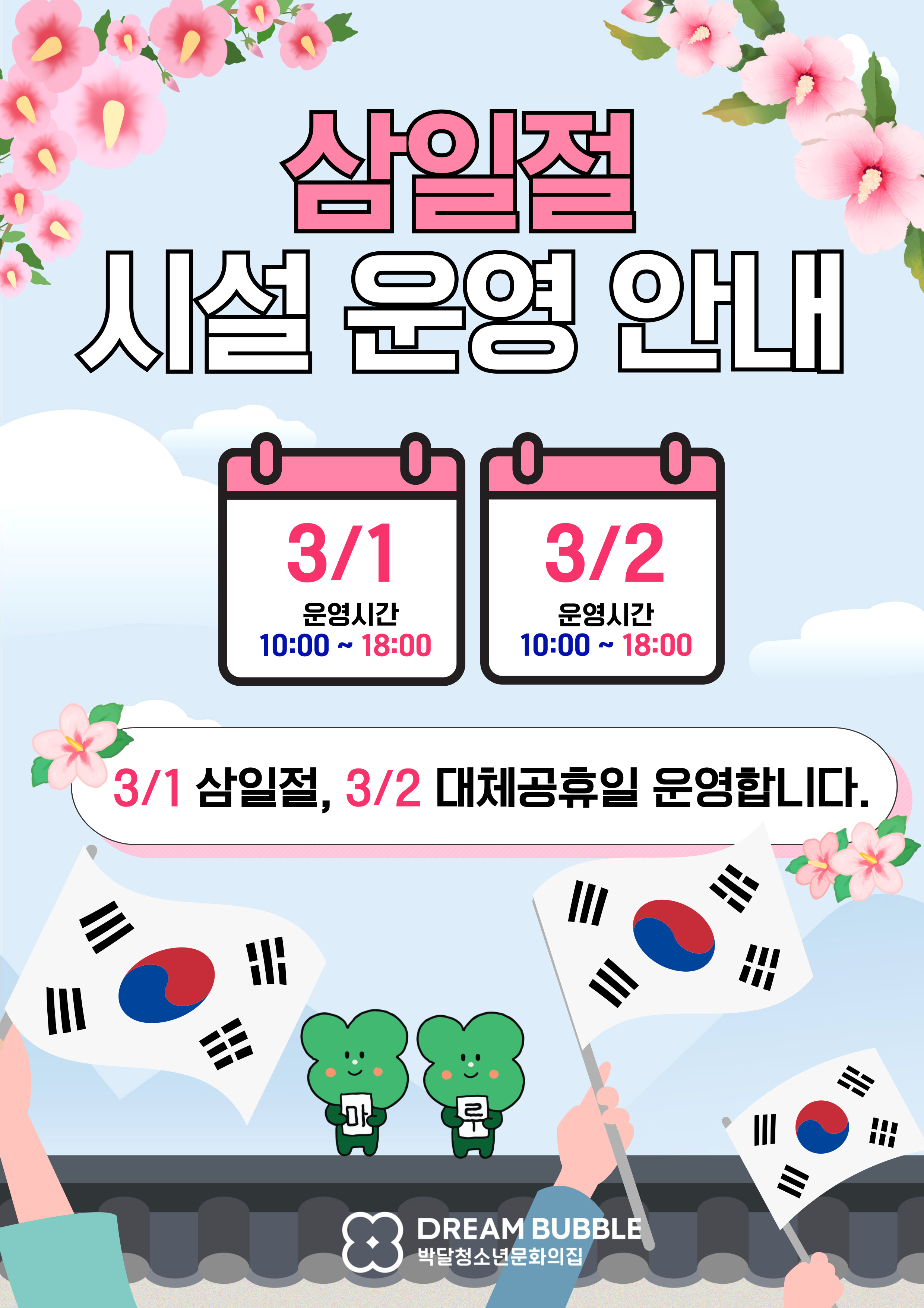 [안내]박달청소년문화의집 3월 삼일절 시설 운영 안내