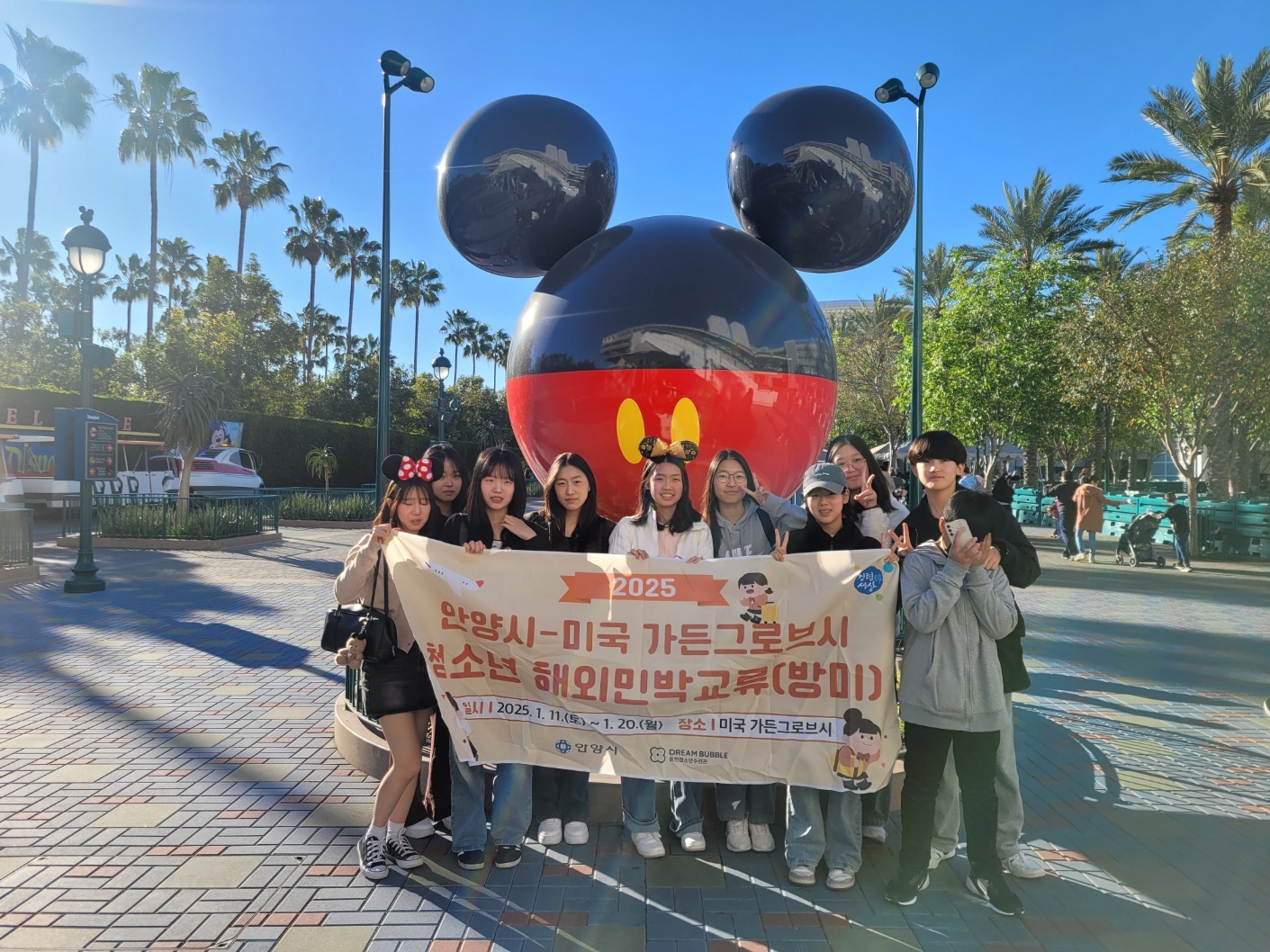 안양시의 자매도시인 미국 가든그로브시와의 청소년 민박교류연수를 통해 도시 간 우호를 증진하고 미국의 문화유적지와 학교를 탐방하며 견문을 넓히고 민간 외교사절단으로서의 역할을 수행하는 청소년국제교류 활동입니다. |