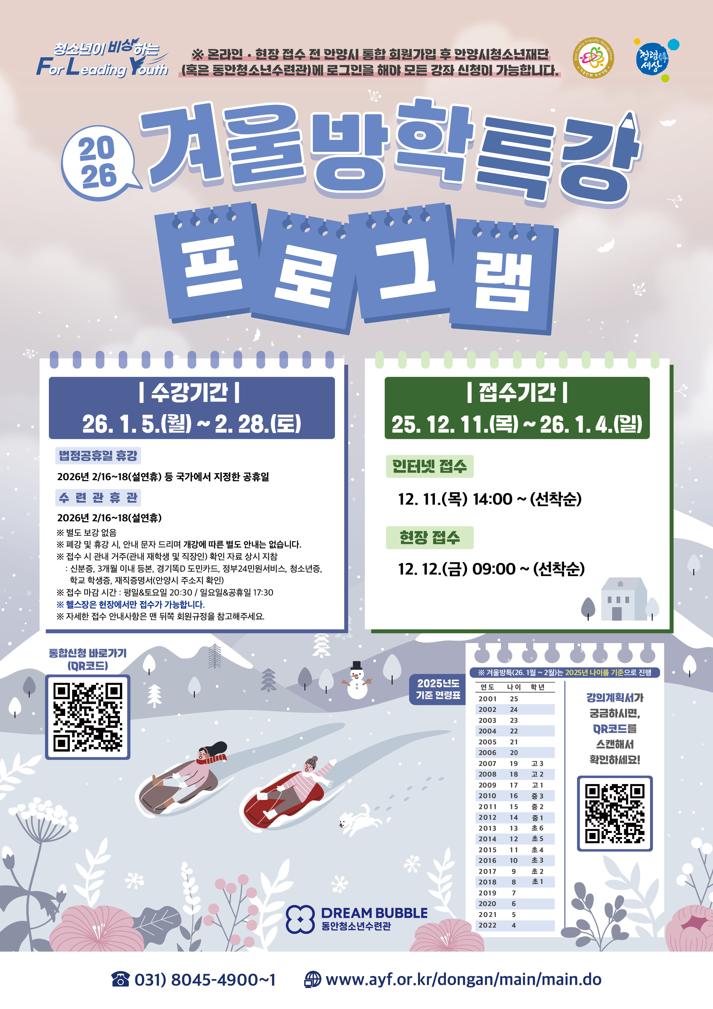 - 인터넷접수 : 2025. 12. 11.(목) 14:00부터 (선착순)
