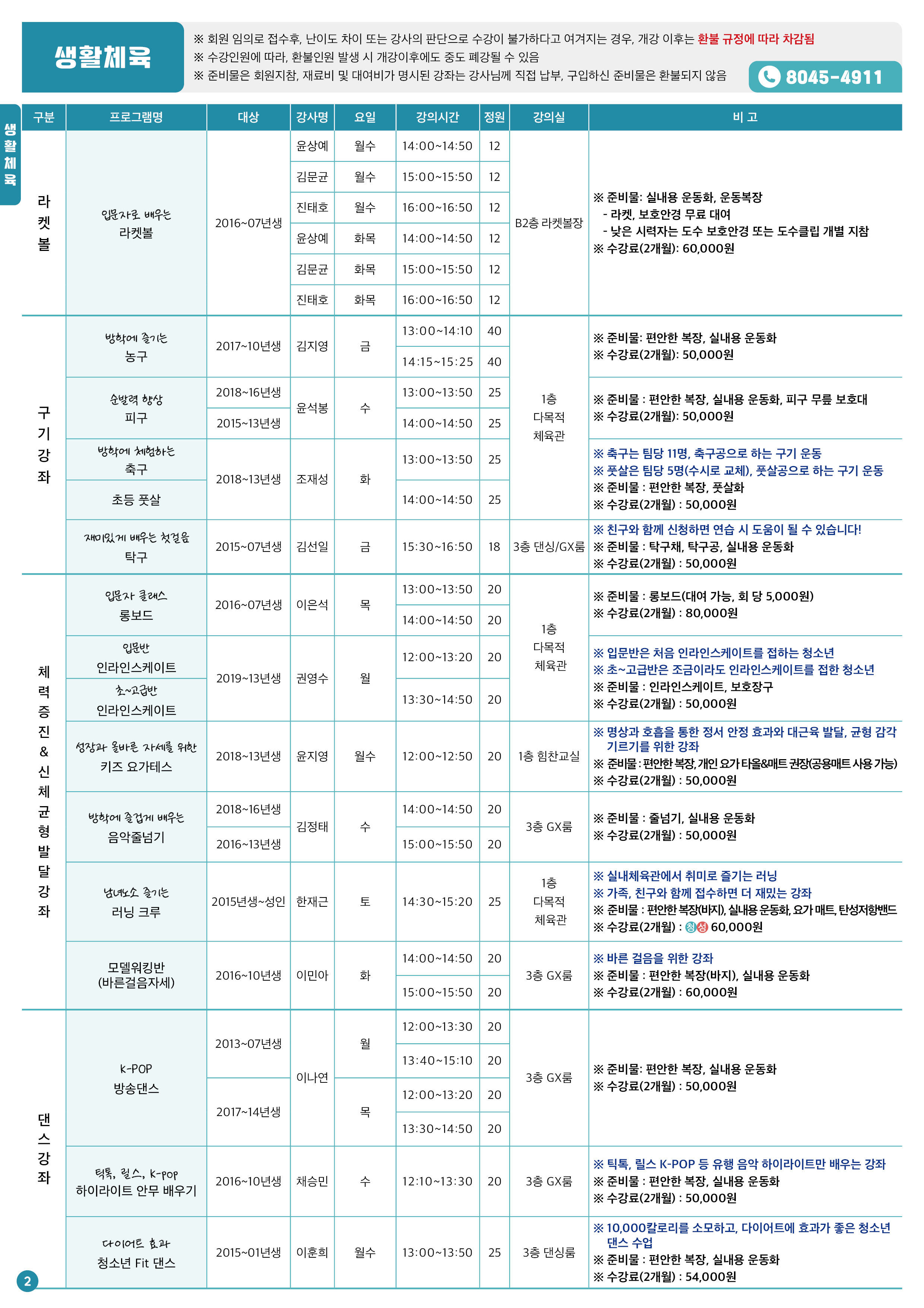 ※ 법정공휴일 및 수련관 휴관일(2026. 2. 16.(월) ~ 18.(수), 설 연휴) 등 국가에서 지정한 공휴일은 휴강 및 별도의 보강이 없습니다.