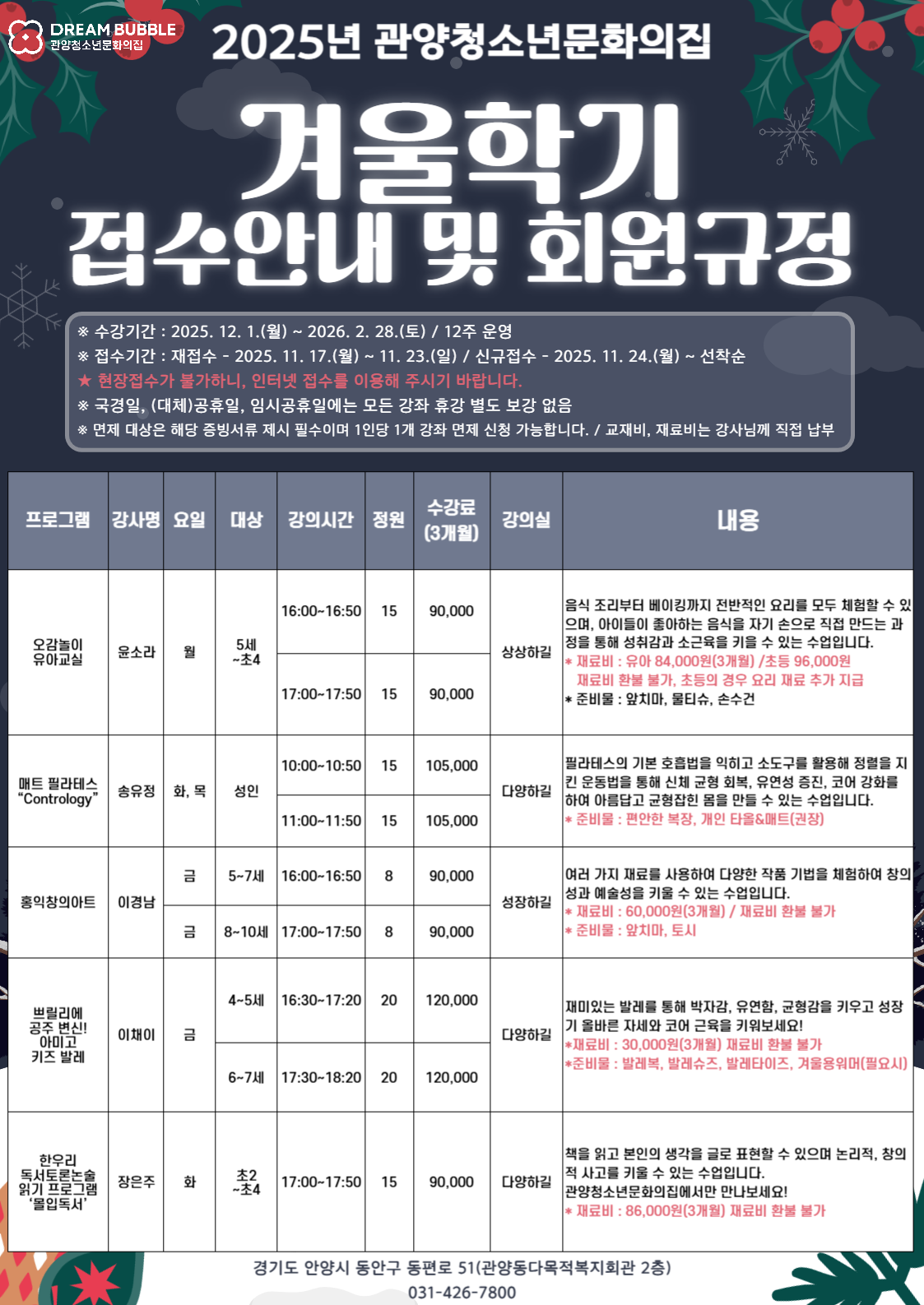 [겨울학기(25년 12월~26년 2월) 정규 강좌 재접수 및 신규접수 안내]