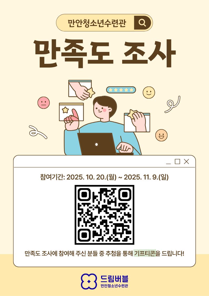 2025년 하반기 만안청소년수련관 수강생 만족도 조사를 실시합니다.