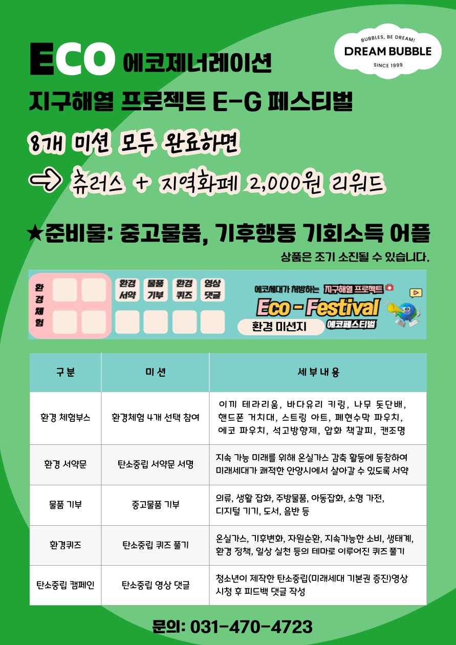 만안청소년수련관에서 역사와 환경이 결합된 축제를 운영합니다. 다양한 체험거리, 볼거리, 상품 등이 준비되어있으니 많은 참여 부탁드립니다.