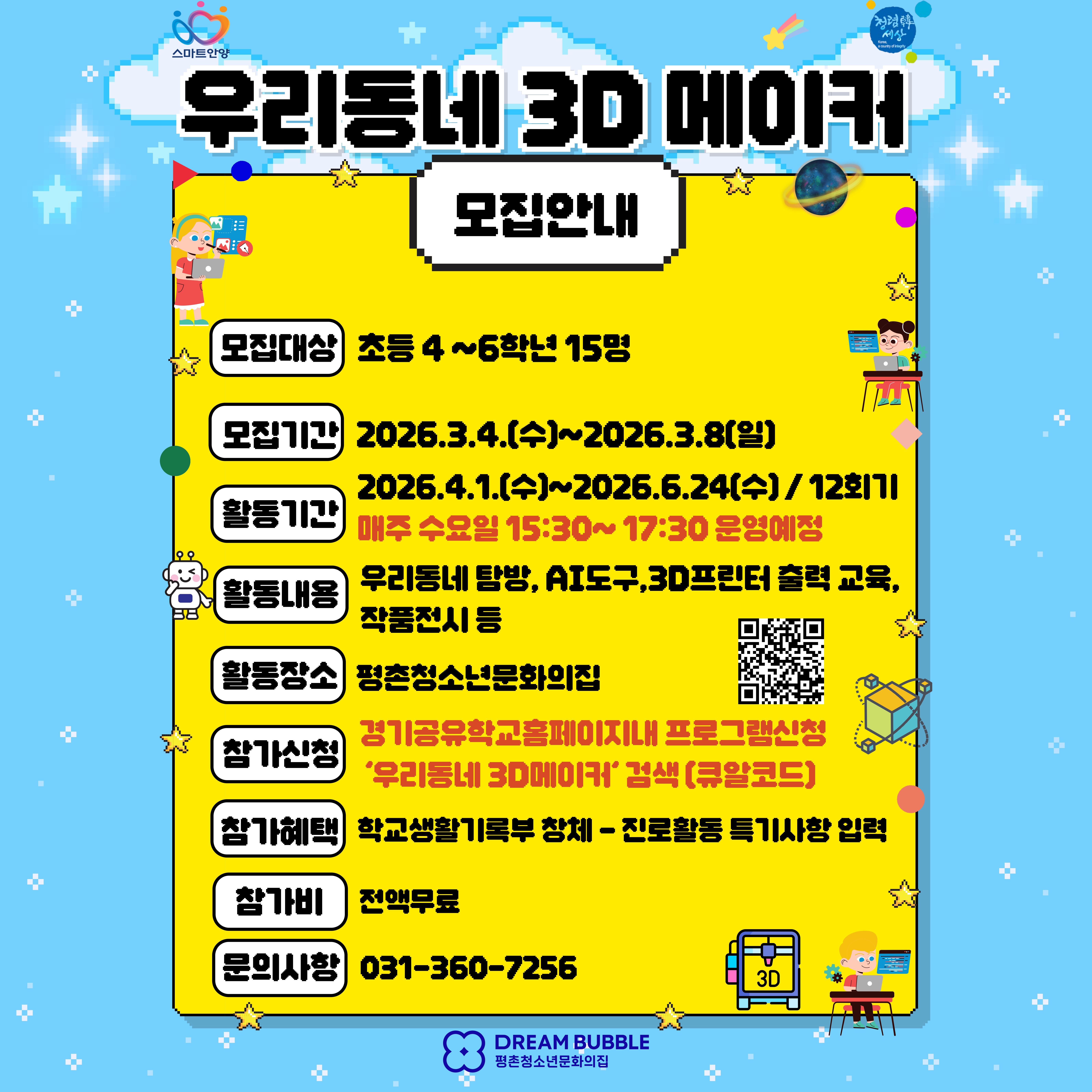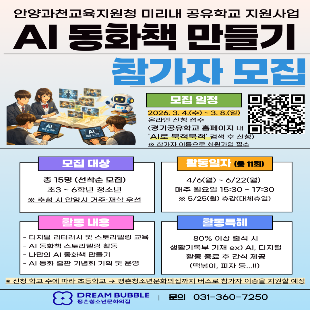 • 활동기간: 2026.4.1.(수)~6.24.(수) 매주 수요일 15:30 ~17:30(총12회)