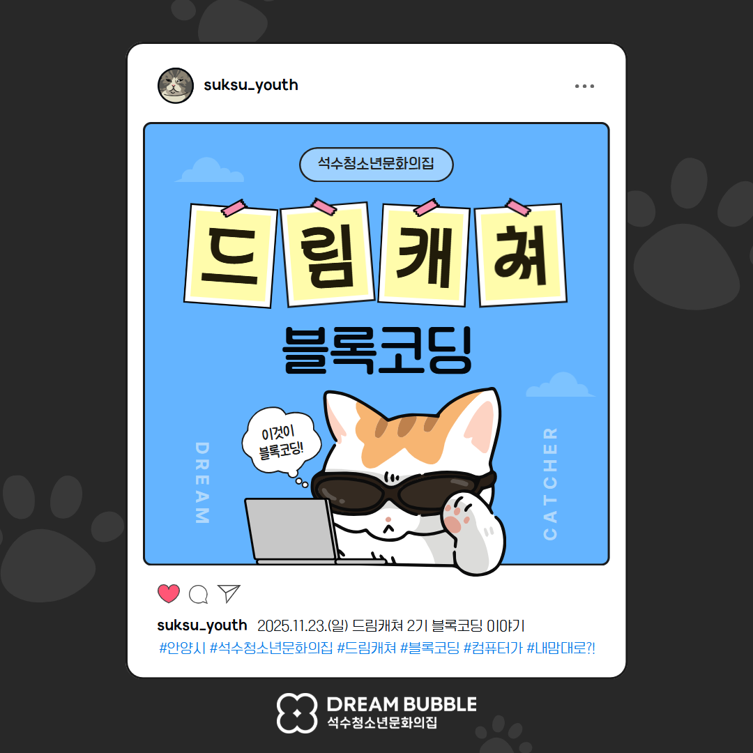 시설 석수청소년문화의집 | 작성자 석******** | [드림캐쳐] 2기 블록코딩 2회기 진행 | 작성일 2025-11-23 |